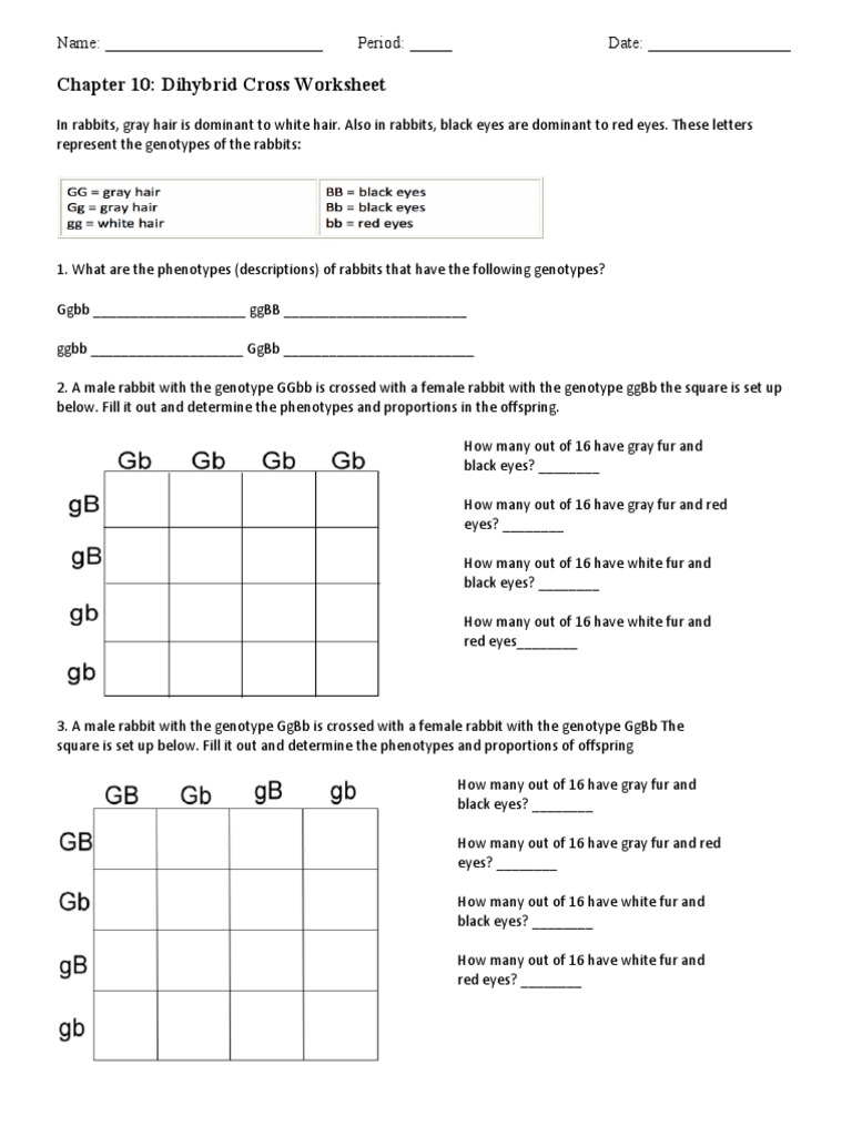 Dihybrid cross worksheet in rabbits, gray hair is dominant to white hair. Some of the worksheets for this concept are dihybrid cross practice answer key, chapter 10 work answers, chapter 10 work answers, chapter 10 work answers, chapter 10 work answers, chapter 10. Types of chemical bonds worksheets answer key. Chapter 10 dihybrid common worksheets : Some of the worksheets displayed are dihybrid punnett square practice punnett squares answer key chapter 10 dihybrid cross work punnett squares dihybrid dihybrid punnett square solutions 1.
